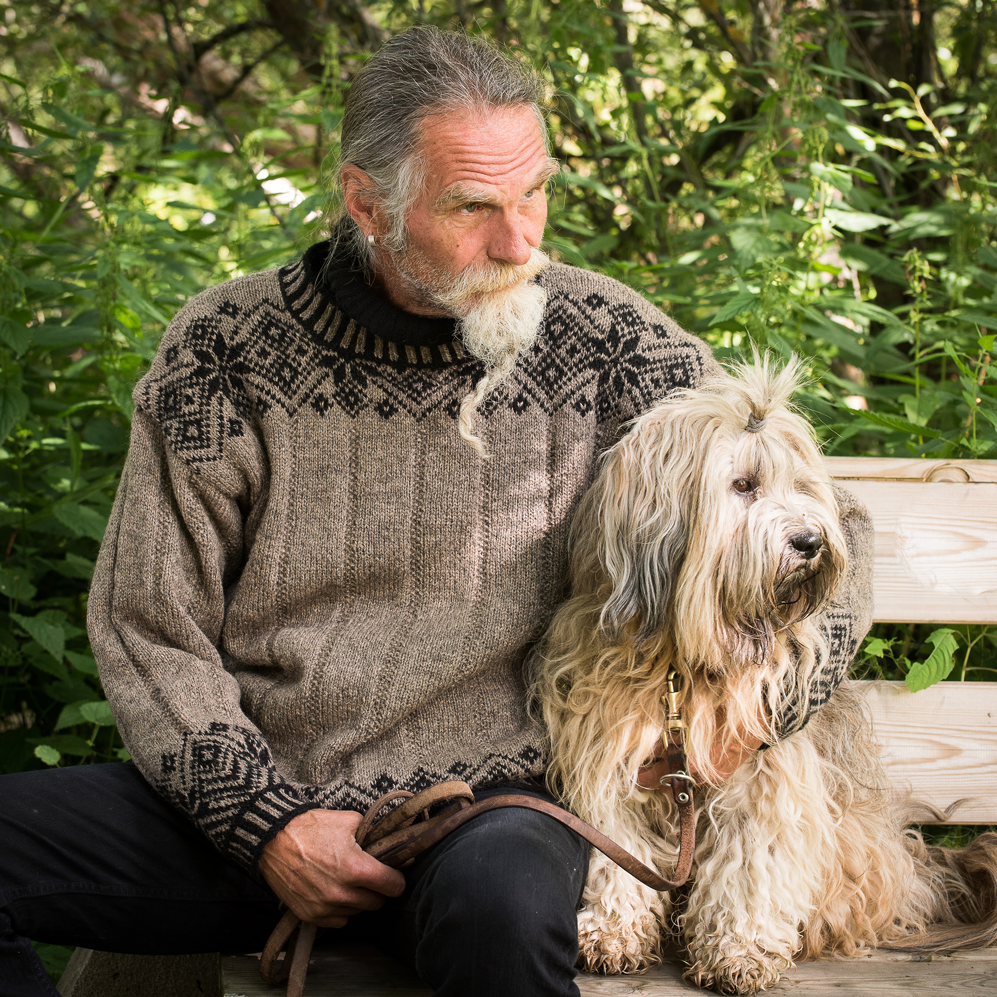 Tøff genser strikket i Tinde pelsullgarn. Garnpakken inneholder oppskrift og garn nok til den aktuelle størrelsen.