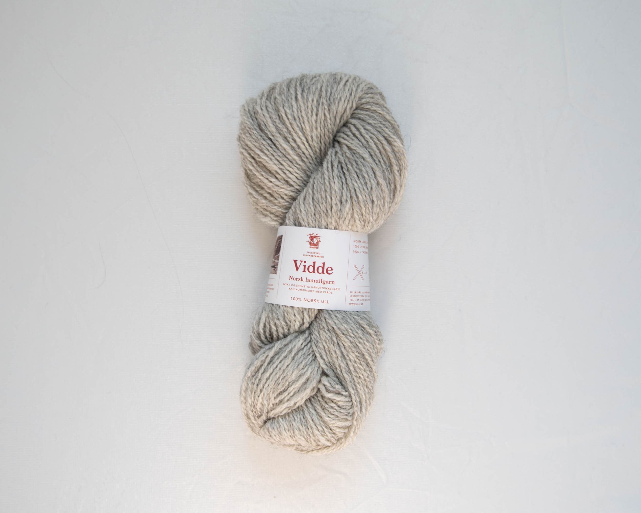 Vidde lamullgarn er et 2-trådet, mykt og spenstig kardegarn. Ca 200 m pr. 100 g, Nm 4/2. 100% norsk ull.