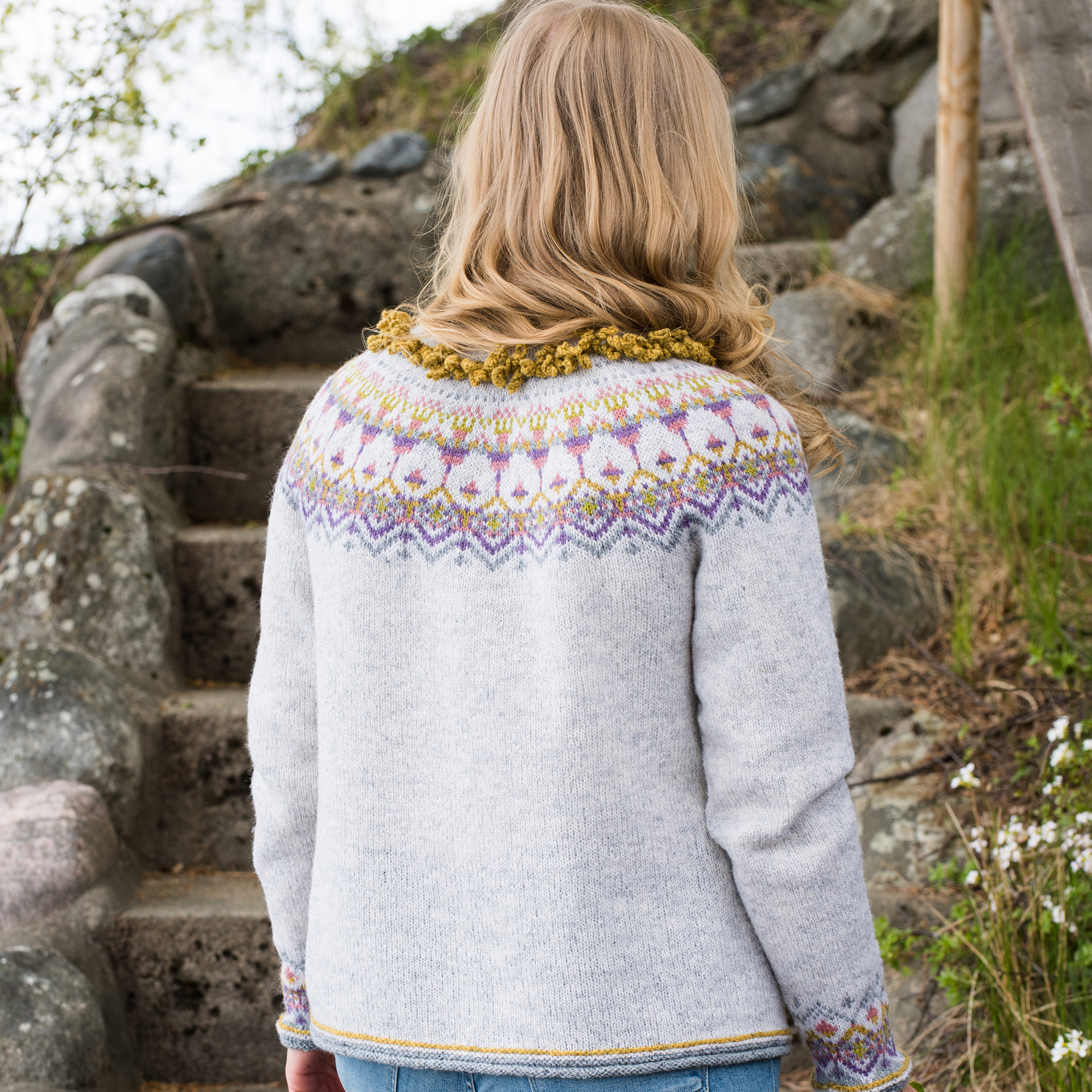 Pinneforslag: Pinner nr. 2.5 og 3. Dersom du strikker fastere når du strikker mønsterstrikk, så strikke disse partiene på nr. 3.5. Heklenål nr. 2.5.